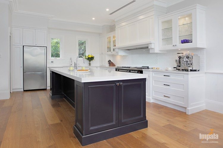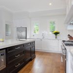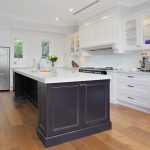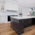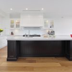 • A large island for seating whilst the adults were cooking. The island was done in a striking dark colour (Dulux Klavier) to address the client’s brief “not all white!” and in keeping with the requested Hamptons style.