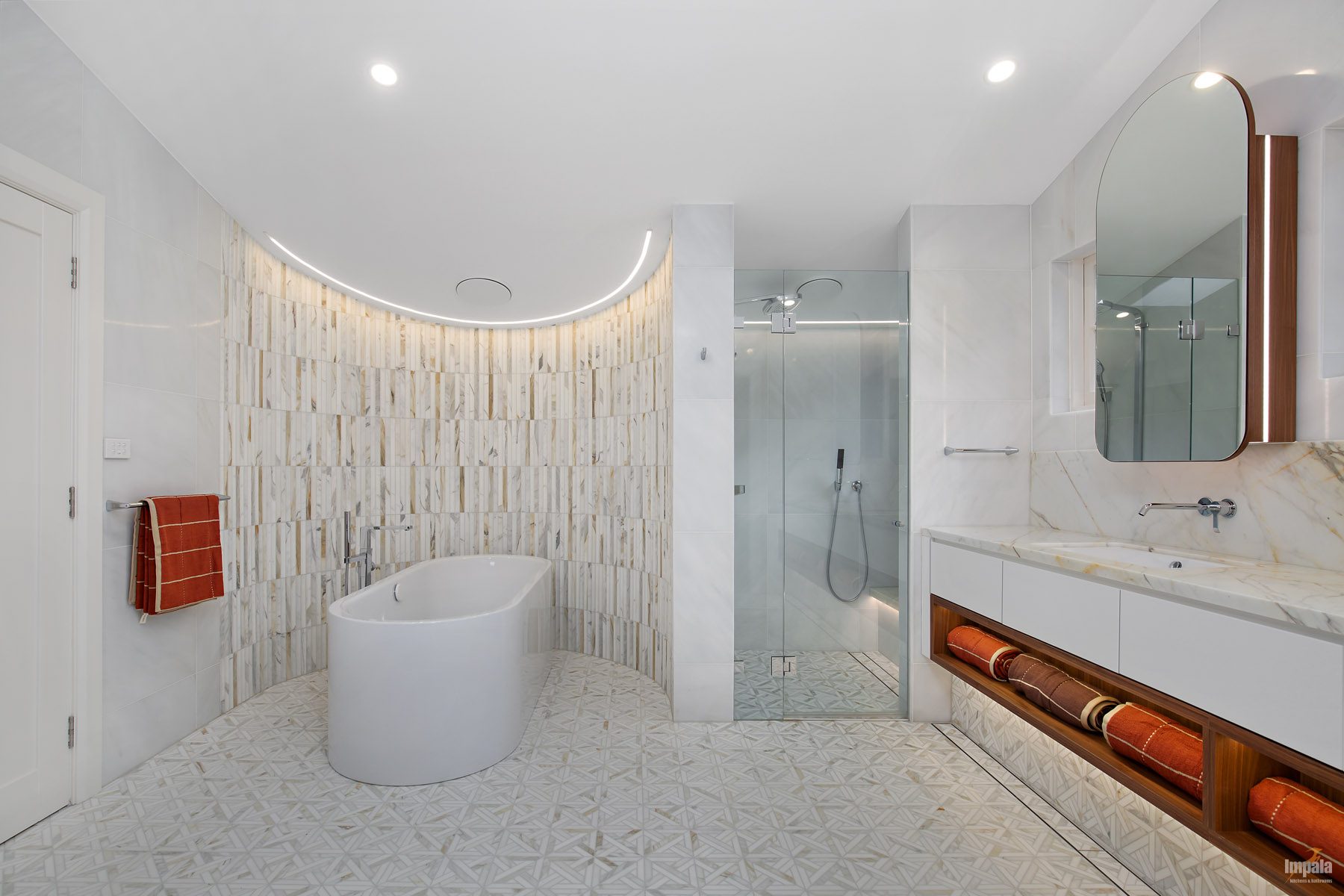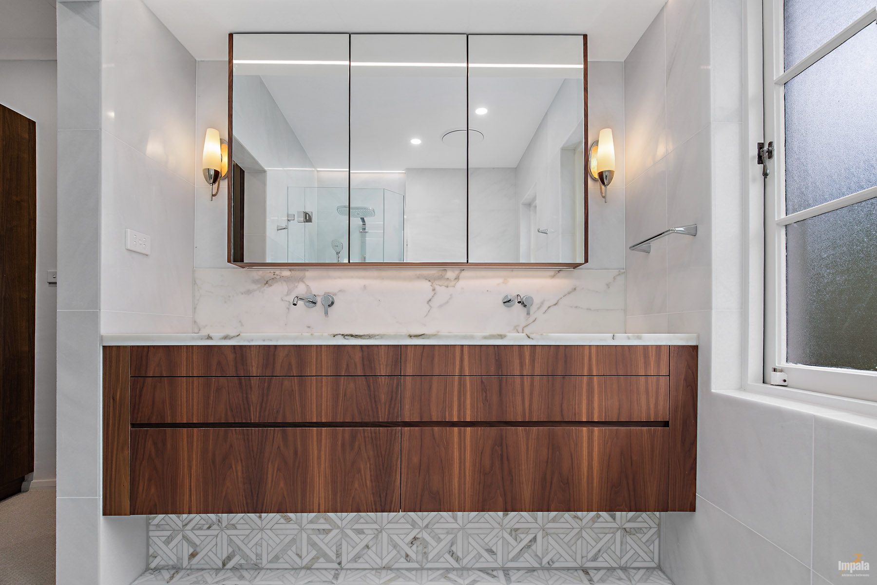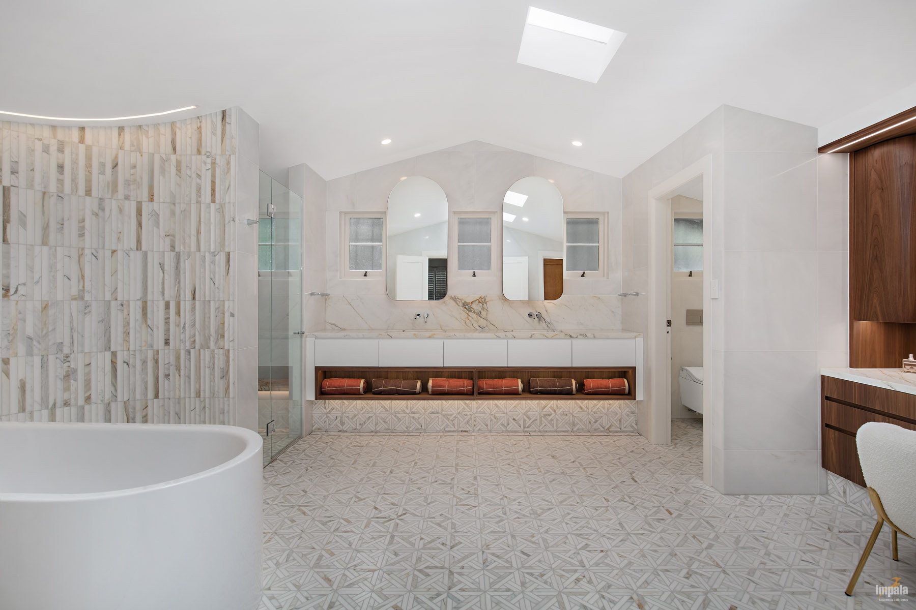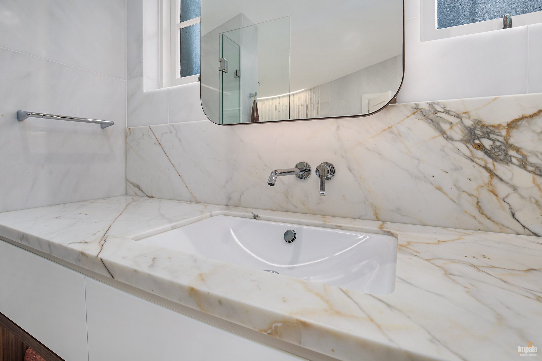 The master ensuite is more than a bathroom, it’s a private retreat, a space to unwind and reset. At Impala, we specialise in creating interiors that merge functionality with timeless design. One of our favourite pairings for a truly indulgent ensuite is American Walnut Veneer with Paonazzo Honed Marble. Together, these materials bring warmth, elegance, and sophistication to a room designed for relaxation.