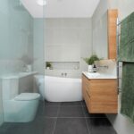 These hard-working family bathroom had a radical reinvention. Walls were moved and a