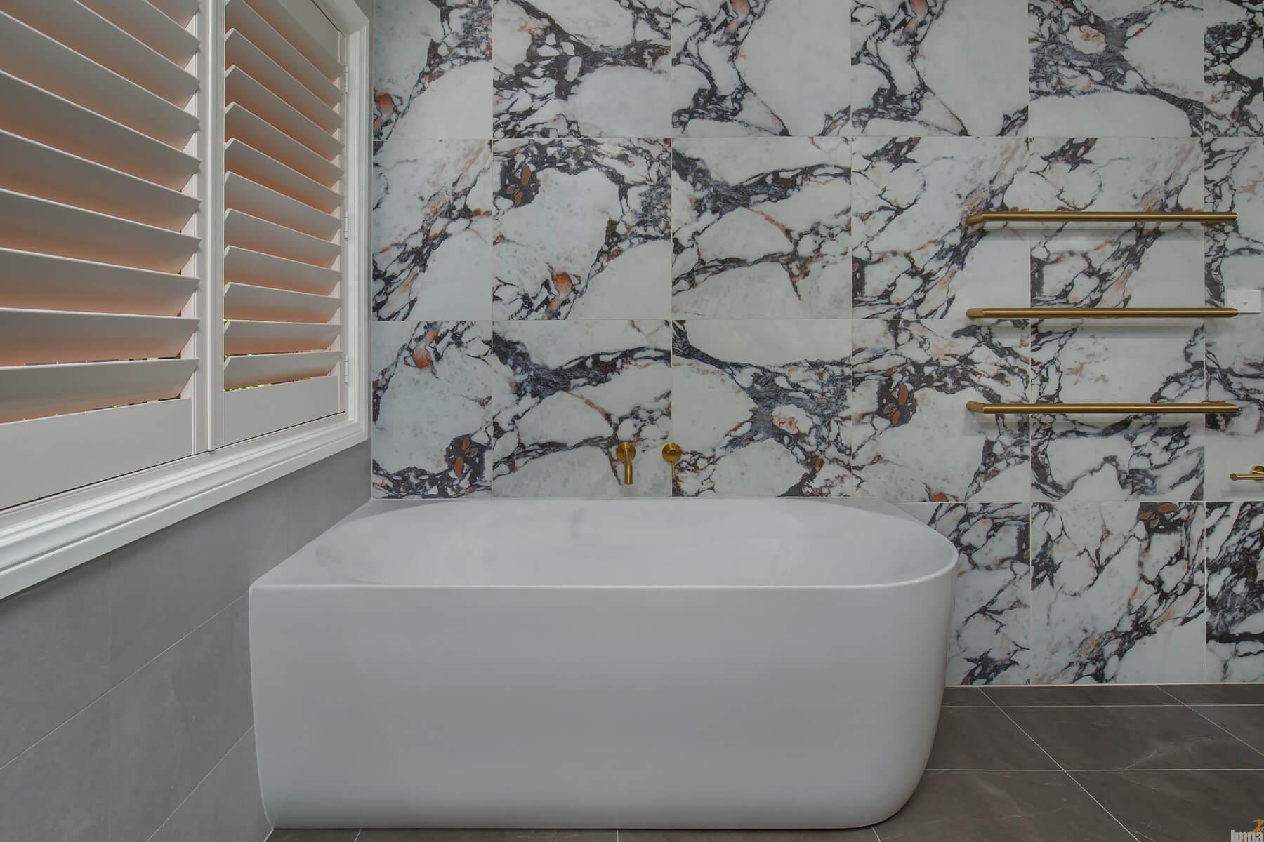 The hero of this bathroom is the striking marble-look wall tiling. With dramatic veining and a seamless layout, the stone creates depth and movement while maintaining a calm, elegant feel. By carrying the same material throughout the space, the design feels cohesive and intentionally layered rather than busy, becoming an exquisite example of bathroom design in Sydney